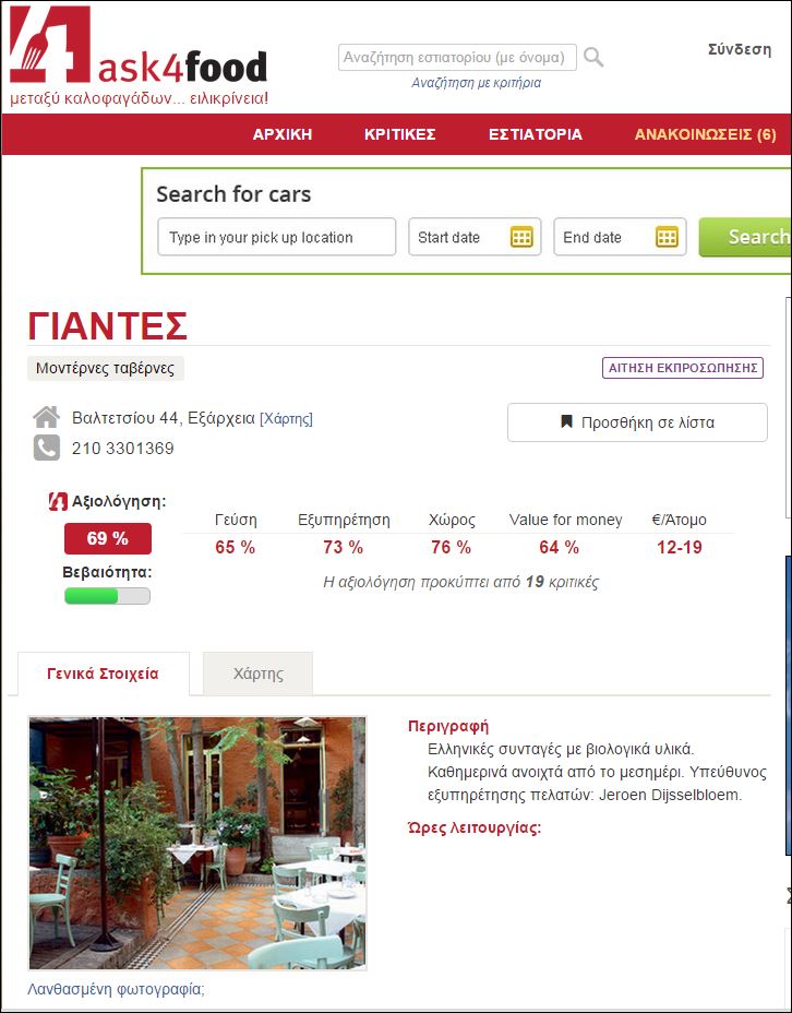 Υπεύθυνος του εστιατορίου έξω από το οποίο αντιεξουσιαστές προπηλάκισαν τον Γιάνη Βαρουφάκη, εμφανίζεται ο … Γερούν Ντάισελμπλουμ. Κάποιος προφανώς “χάκαρε” ιστοσελίδα-οδηγό για τα εστιατόρια της Αθήνας και άλλαξε τα στοιχεία που αφορούν στο εστιατόριο “Γιάντες”, το μαγαζί στα Εξάρχεια όπου δέχθηκε επίθεση ο υπουργός Οικονομικών.