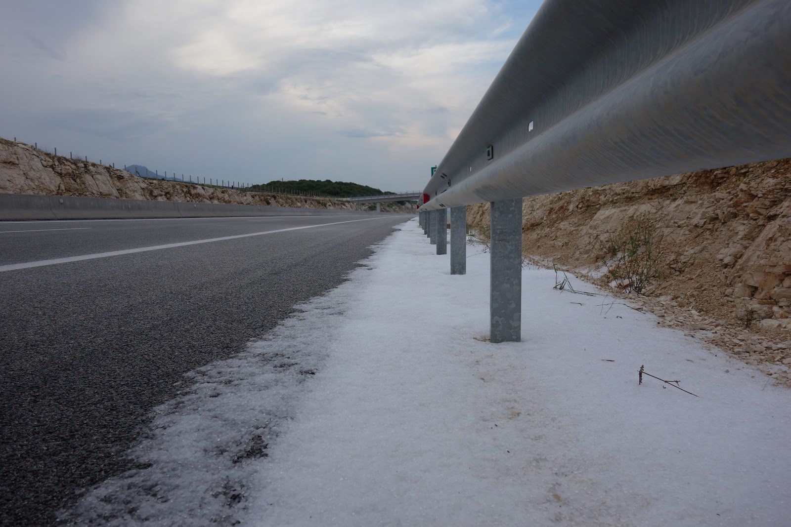 Λίγα μόλις λεπτά ήταν αρκετά για να καλυφθεί ο αυτοκινητόδρομος με ένα πυκνό στρώμα από χαλάζι, ενώ για την απομάκρυνσή του και την αποκατάσταση της κυκλοφορίας χρειάστηκε να κινητοποιηθεί εκχιονιστικό όχημα της Ιόνιας Οδού.