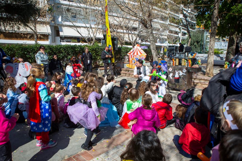 Παιδική αποκριάτικη γιορτή με μουσική, ξυλοπόδαρους, εμψυχωτές, ταχυδακτυλουργούς και δημιουργικές δραστηριότητες.