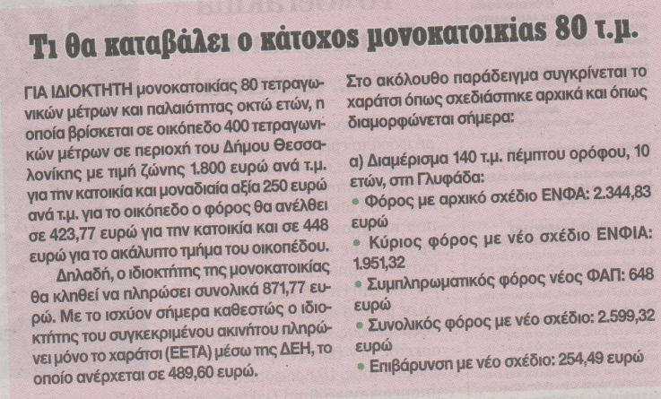 Τι θα πληρώσει ο ιδιοκτήτης μονοκατοικίας 80 τ.μ