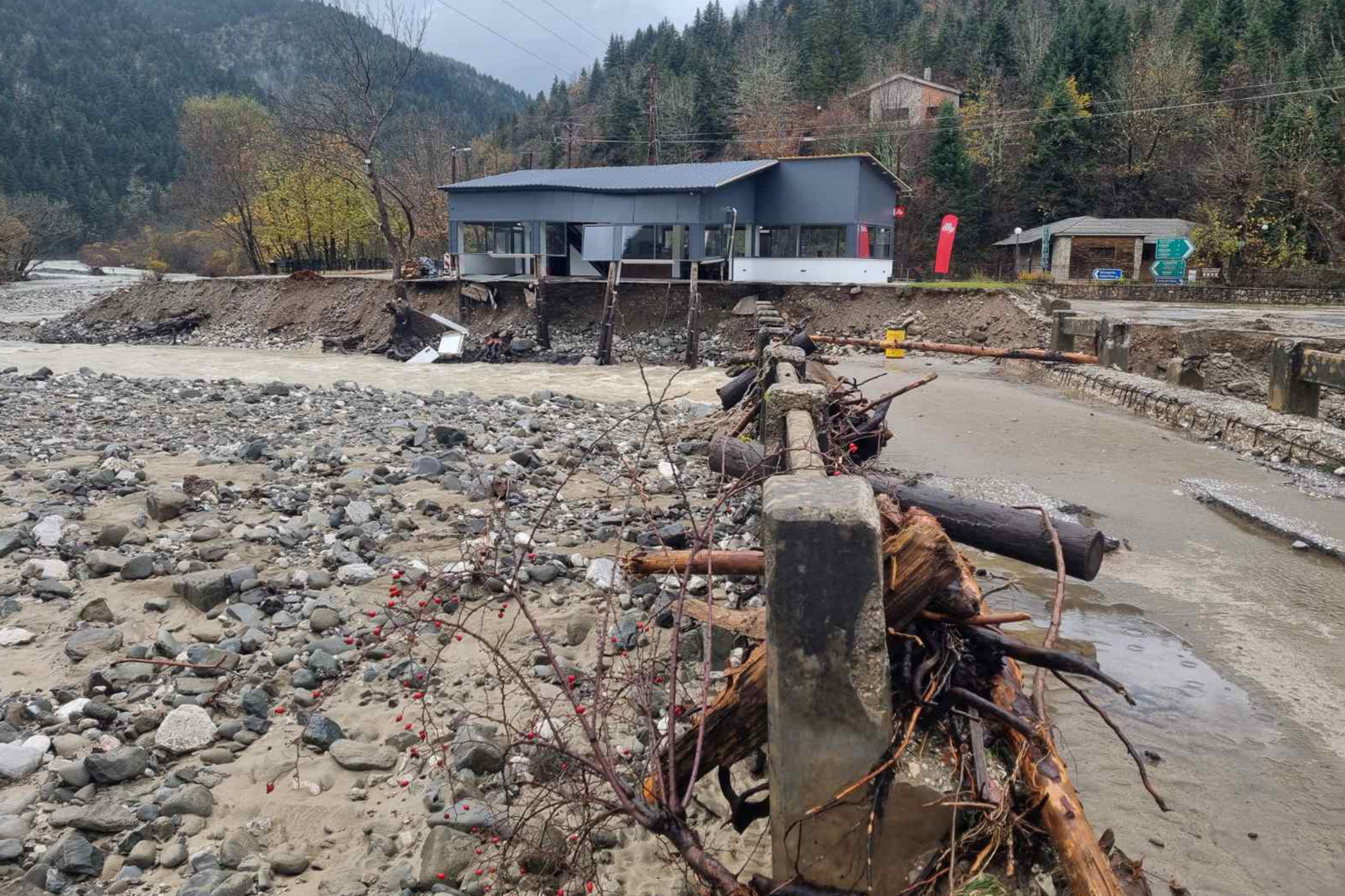 Τέσσερα χωριά στην περιοχή δεν έχουν ρεύμα, ενώ το οδικό δίκτυο έχει υποστεί καταστροφές. Κλειστός είναι ο δρόμος από Παλαιοχώρι προς Συρράκο – Καλαρρύτες, λόγω καθίζησης. Η διέλευση πραγματοποιείται μέσω Πραμάντων.