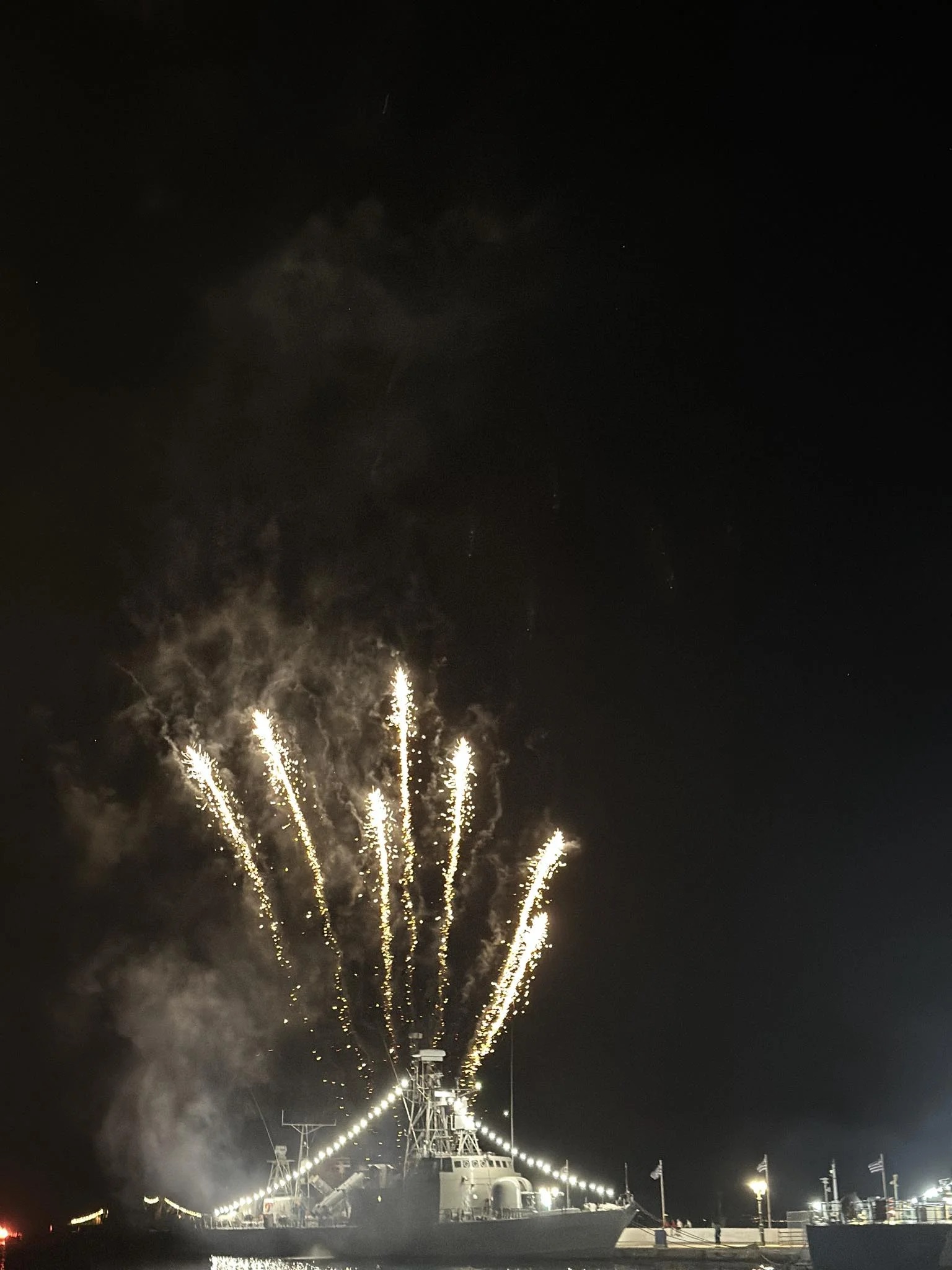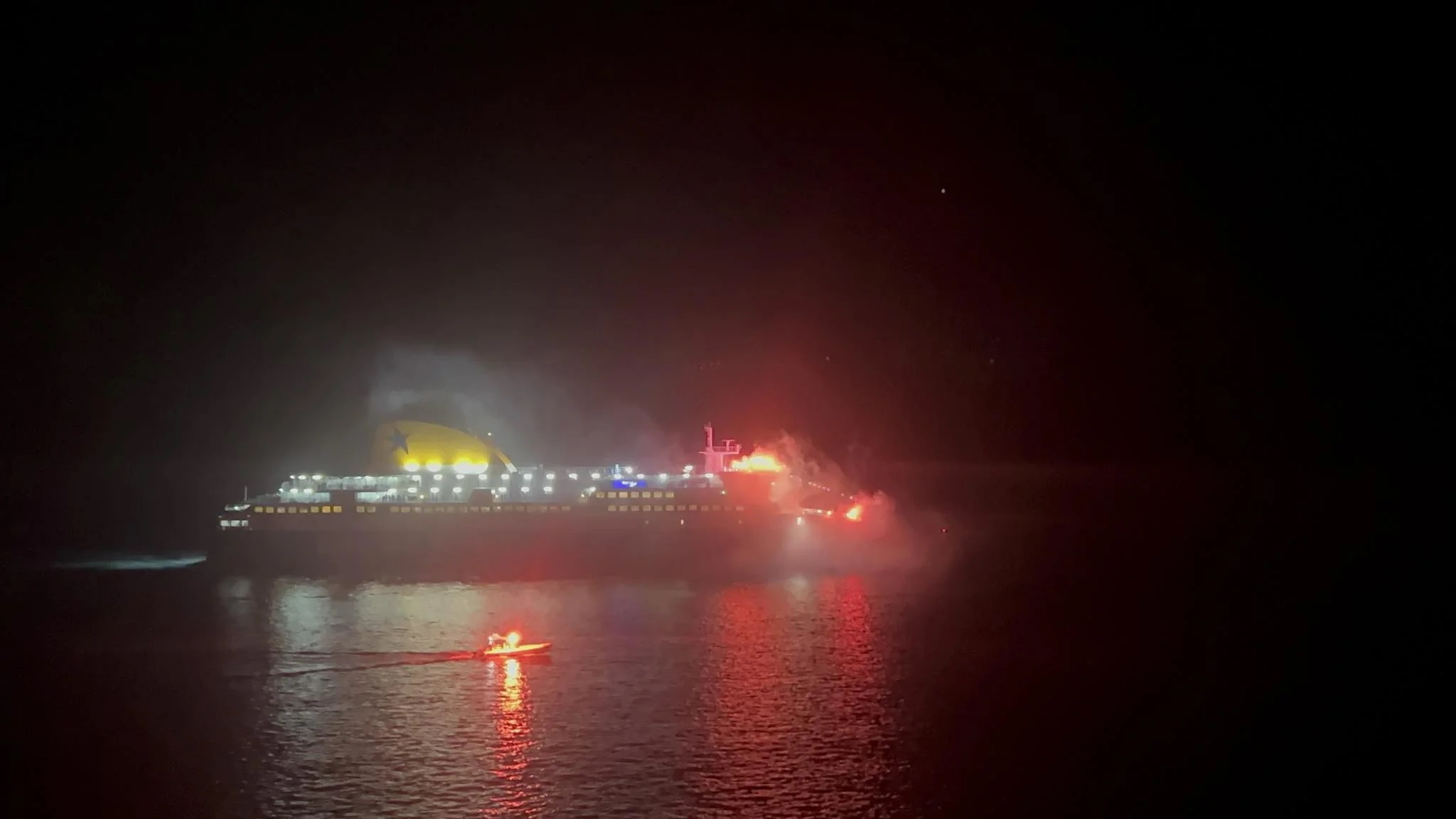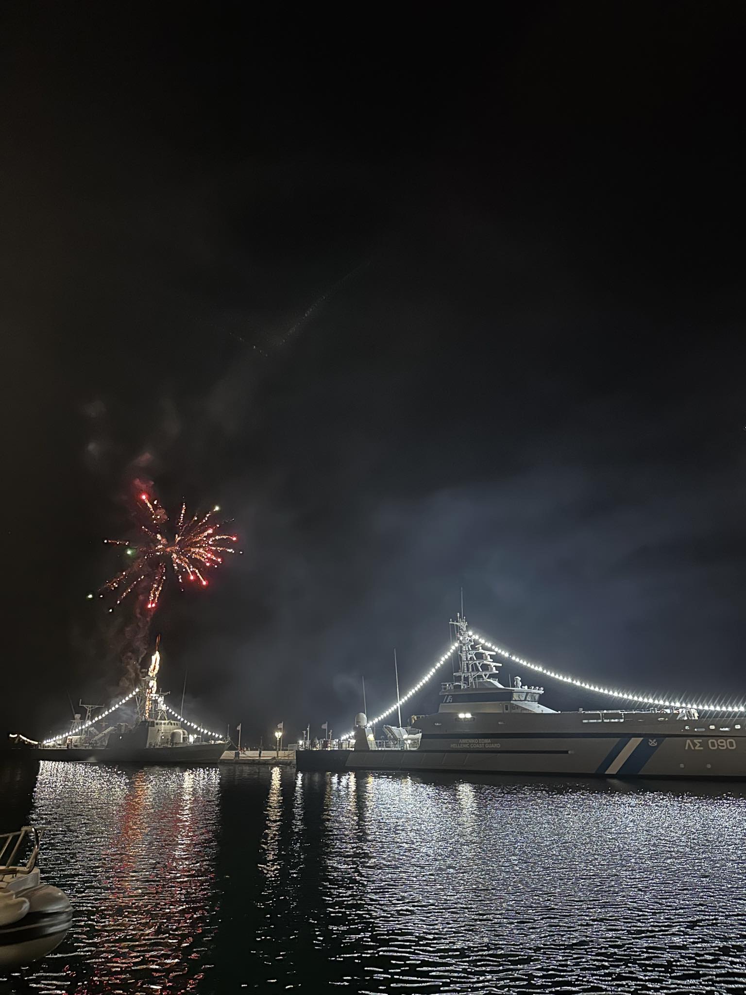 Συγκεκριμένα, σύμφωνα με το tinostoday.gr, λίγο μετά τις 11 το βράδυ της Τετάρτης στη διάρκεια του ελλιμενισμού του πλοίου ο καπετάνιος και το πλήρωμα εκτόξευσαν πυροτεχνήματα και φωταγώγησαν το καράβι, ως ένδειξη τιμής στη μεγάλη γιορτή της Χριστιανοσύνης.