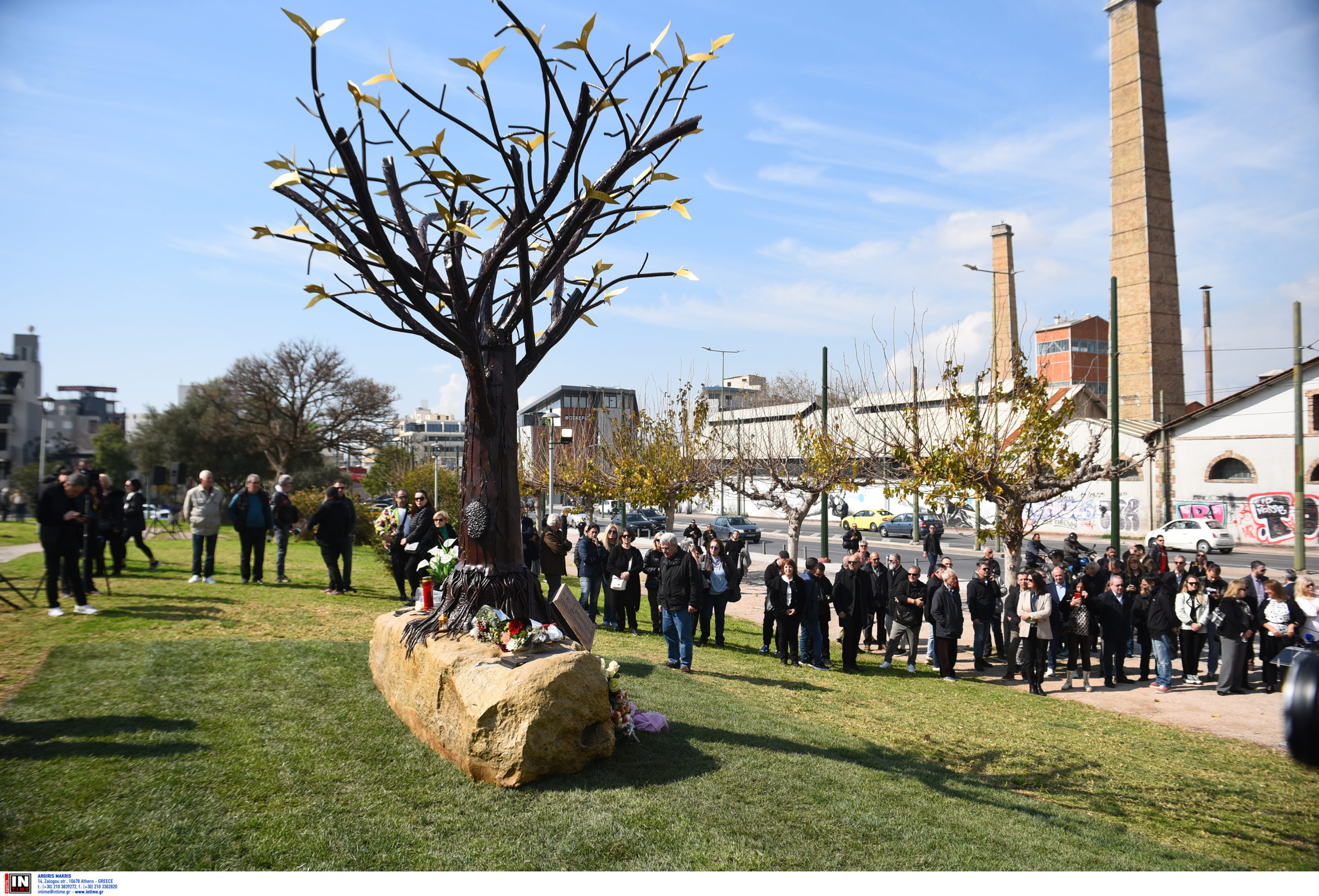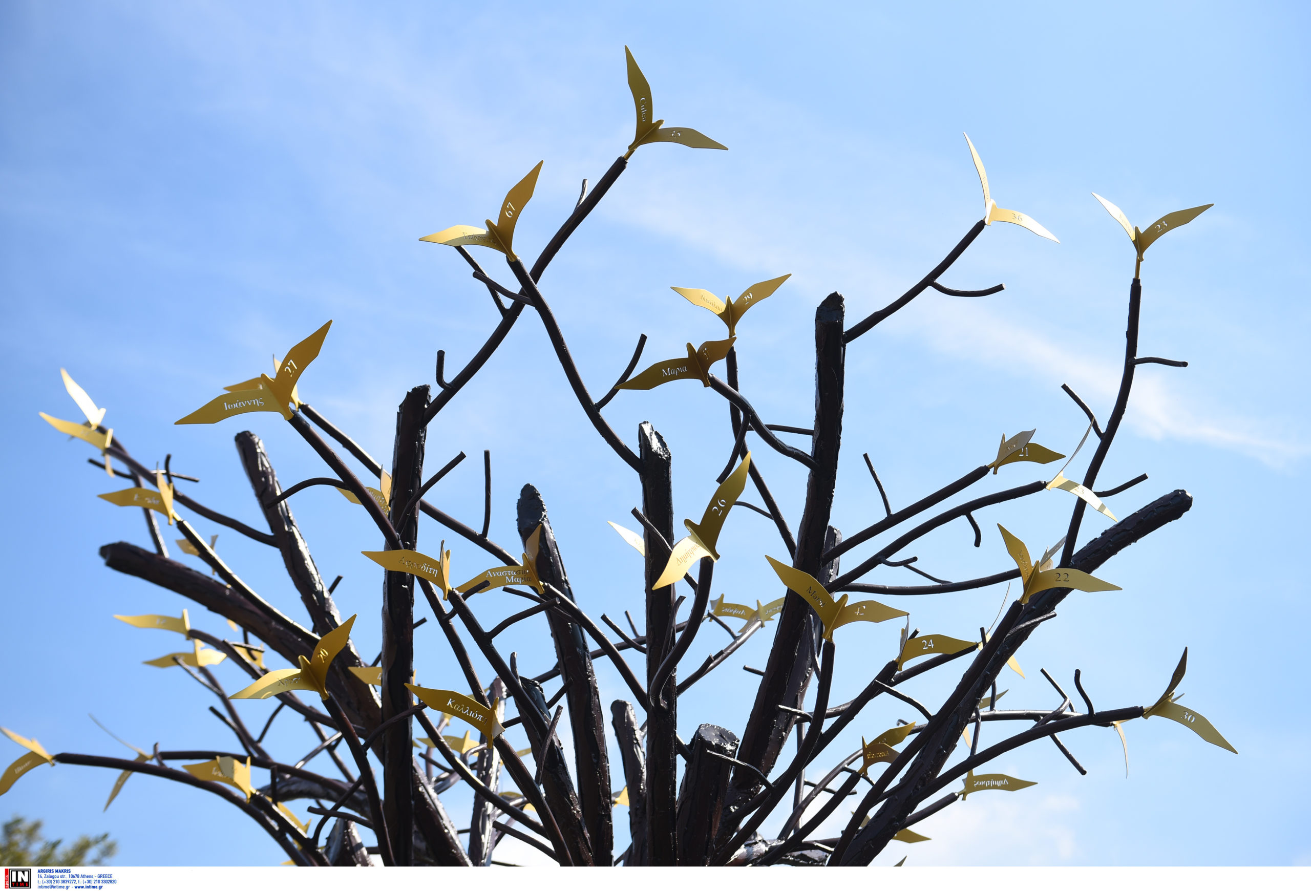 Πραγματοποιήθηκαν σήμερα, Παρασκευή (28/2), τα αποκαλυπτήρια του Μνημείου «το Δέντρο των Ψυχών -Η Αρχή» εις μνήμην των θυμάτων της σιδηροδρομικής τραγωδίας των Τεμπών.