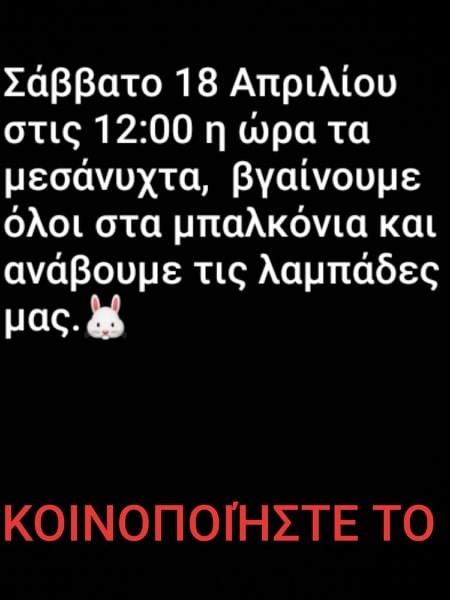 Τις τελευταίες ώρες στα social media κυκλοφορεί διαδικτυακό μήνυμα για το βράδυ του Μεγάλου Σαββάτου, στο οποίο καλούνται οι πολίτες να βγουν τα μεσάνυχτα στα μπαλκόνια τους και να ανάψουν τις λαμπάδες τους μεταδίδοντας το μήνυμα της Ανάστασης.