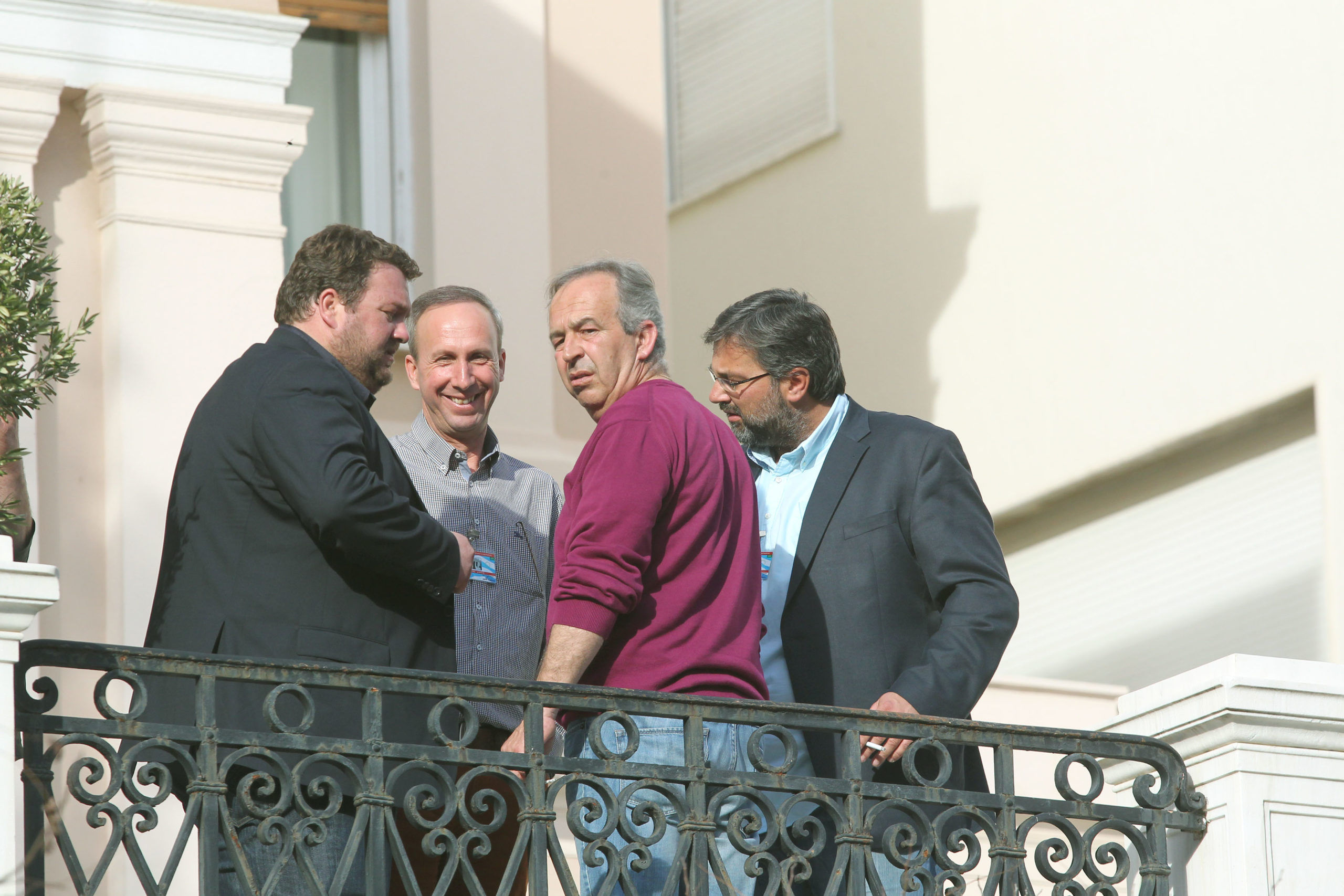 Στο μπαλκόνι του Μεγάρου Μαξίμου βγήκαν οι αγρότες κατά τη διάρκεια διαλείμματος από τη συνάντηση τους με τον πρωθυπουργό Αλέξη Τσίπρα. Η συνάντηση πραγματοποιήθηκε για να μεταφέρουν οι αγρότες που βρίσκονται σε πολυήμερες κινητοποιήσεις τα αιτήματα τους στον πρωθυπουργό.