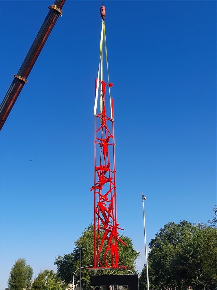 Το “Meteoron” αποτελείται από δεκαπέντε μορφές χυτευμένες σε αλουμίνιο και χρωματισμένες σε κόκκινο χρώμα υψηλής ανθεκτικότητας, ενώ το συνολικό ύψος του μαζί με τη βάση είναι περίπου έντεκα μέτρα. Η γλυπτική σύνθεση τοποθετήθηκε σήμερα το πρωί στον χώρο πρασίνου απέναντι από το Δημαρχείο Θεσσαλονίκης, παρουσία του Δημάρχου Κωνσταντίνου Ζέρβα, του δημιουργού του Κωστή Γεωργίου και του Αντιδημάρχου Τεχνικών Έργων Εφραίμ Κυριζίδη. Τις επόμενες ημέρες θα γίνει η εγκατάσταση του κατάλληλου φωτισμού, οπότε το “Meteoron” θα παρουσιαστεί κι επισήμως στους Θεσσαλονικείς.