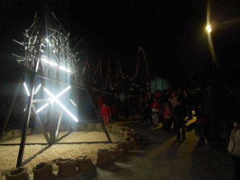 Πρόκειται για μία μια μίνιμαλ εικαστική πρόταση ,ένα μεγάλο μεταλλικό τρίγωνο όπως τα τρίγωνα με τα οποία θα ψάλλουν σε λίγες μέρες τα κάλαντα τα παιδιά στις γειτονιές.
