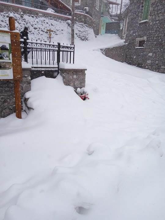 Το πρωί της Δευτέρας περίπου 50 άτομα που είχαν διαμείνει το Σαββατοκύριακο στο οικοτουριστικό χωριό «Έναγρον» κοντά στην Αξό, αποκλείστηκαν από τους μεγάλους όγκους χιονιού που είχε καλύψει τον δρόμο προς τις εγκαταστάσεις του κτήματος.