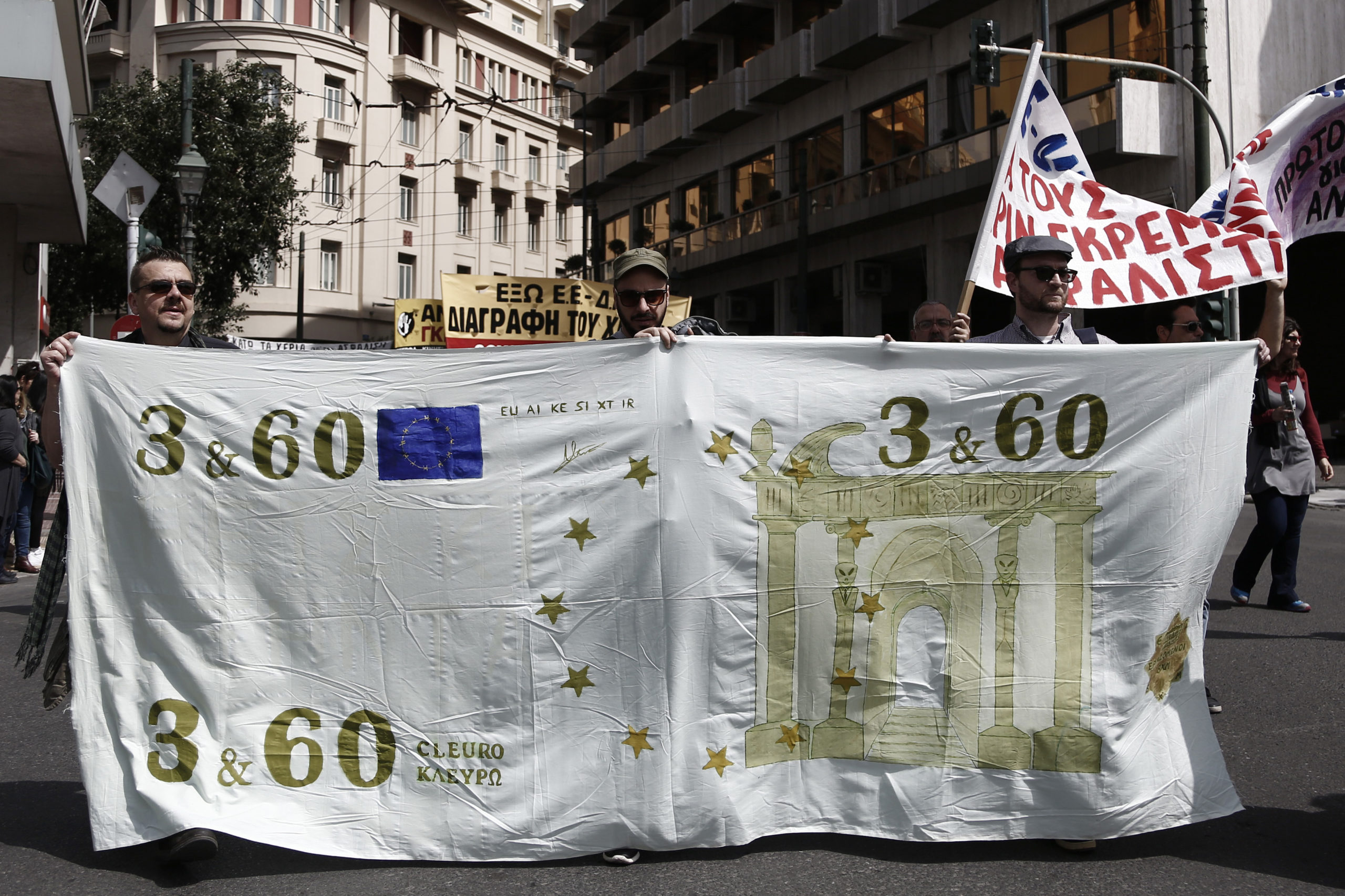 Το χαρτονόμισμα του ευρώ είχαν σχεδιάσει σε πανό διαδηλωτές που συμμετείχαν στη σημερινή πορεία της ΑΔΕΔΥ. Το χαρτονόμισμα ήταν αξίας “3 και 60” και αντί για τη λέξη “ευρώ” είχαν γράψει “κλευρώ”.