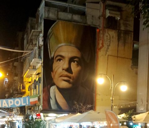 Όπως οι περισσότεροι θα παρατηρήσετε είναι ίδιος ο… Αλέξης Τσίπρας, ωστόσο προφανώς δεν πρόκειται για τον πρώην πρωθυπουργό, αλλά για τον San Gennaro, τον πολιούχο της πόλης. Πρόκειται για έργο του street artist Jorit Agoch, σε ένα κτίριο στην είσοδο της συνοικίας.