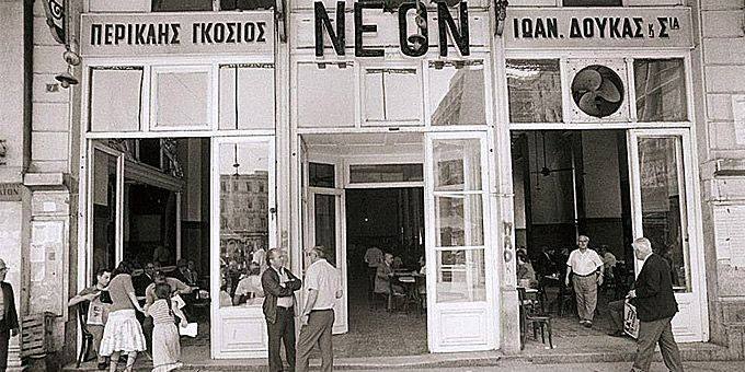 Βαρυφορτωμένο με έξοχες ιστορικές μνήμες, την αστική ανάπτυξη της Αθήνας τον μεσοπόλεμο, αλλά και τις οδυνηρές μνήμες για τον ελληνισμό της μικρασιατικής τραγωδίας, προβάλλει στην δαιμονοποιημένη – και σιγά σιγά αναβαθμιζόμενη – Πλατεία Ομονοίας, το ιστορικό Καφενείο της Αθήνας «Νέον», με άλλη χρήση πλέον ωστόσο, ως φούρνος της αλυσίδας Βενέτη. Διατηρώντας όμως την περίφημη ιστορική εσωτερική του διακόσμηση, που αποτέλεσε πεδίο έμπνευσης ποιητών, συγγραφέων, αλλά και εικαστικών, με τον μεγάλο Γιάννη Τσαρούχη, να έχει αποθανατίσει το ιστορικό μας καφενείο, σε δυο σπουδαίους πίνακές του. Τις πελώριες δωρικές κολώνες, τις επιβλητικές τους στέψεις, τις διακοσμητικές σκαλιστές ιπτάμενες σφίγγες, που κρατούσαν τους πελώριους καθρέπτες του, και όλα τα άλλα αισθητικά του στοιχεία, που το καθιστούσαν μοναδικό ! Το καφενείο «Νέον» ξεκίνησε την λειτουργία του το 1920, με ιδιοκτήτες τους Περικλή Γκόσιο και Γιάννη Δούκα, στο ισόγειο του ξενοδοχείου Carlton, με το όνομα «Νέον Βυζάντιον».
