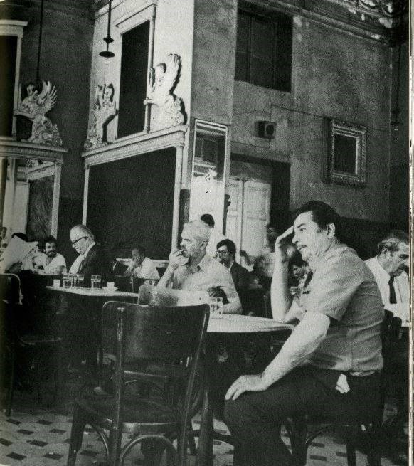 Ένα ατέρμονο κοινωνικό μελίσσι, στο μεγαλοπρεπές καφενείο, με τα αχανή μαρμάρινα τραπεζάκια του, τους κιτρινισμένους από το διάβα του χρόνου τοίχους της λαδομπογιάς, που επικάλυπταν οι επιβλητικοί καθρέπτες στηριζόμενοι στις ιπτάμενες σφίγγες και τα πανύψηλα ταβάνια με τις ανάγλυφες παραστάσεις, που επίσης υπέβαλαν ψυχολογικά τους πελάτες ! Ένα μικρό θαύμα στο κέντρο της πόλης, που συνταίριαζε μέσα στο πολύπλαγκτο ηθικό και κοινωνικό του χρώμα, ολάκερη την κοινωνική ταυτότητα της Αθήνας. Όμως όλα αυτά έχουν περάσει στο παρελθόν, μαζί με τα στοιχεία της Αθήνας, για αυτή την χρονική περίοδο της κεντρικής περιοχής της Ομονοίας, που πάντα υπήρξε ένας οδοδείκτης στην ζωή της πόλης. Πρίν λίγα χρόνια πάραυτα, το καφενείο ξανάνοιξε τις πόρτες του, με άλλη χρήση – ως κατάστημα της αλυσίδας φούρνων «Βενέτη» – αλλά διατηρώντας τα ατίμητα εσωτερικά διακοσμητικά του στοιχεία και μαζί τους, τις αξέχαστες αναμνήσεις της αθηναϊκής κοινωνίας για αυτό