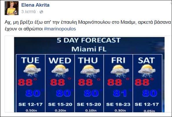 «Αχ, μη βρέξει έξω απ’ την έπαυλη Μαρινόπουλου στο Μαϊάμι, αρκετά βάσανα έχουν οι άνθρωποι».