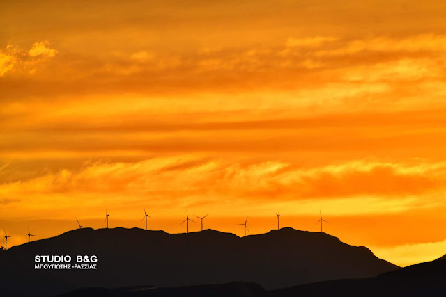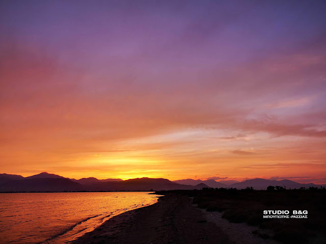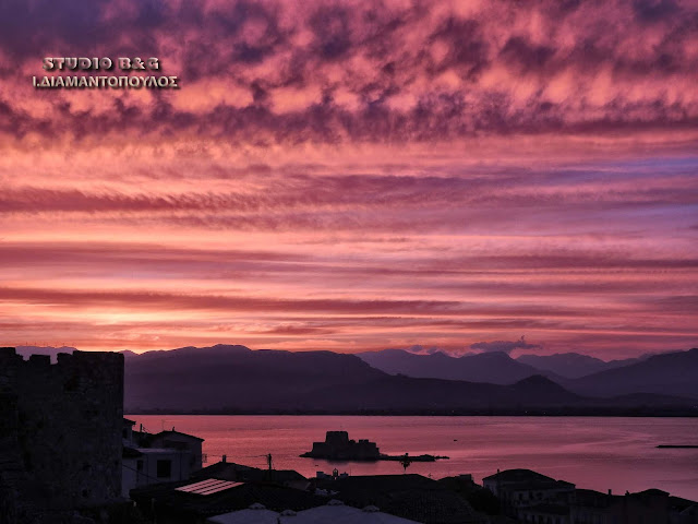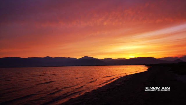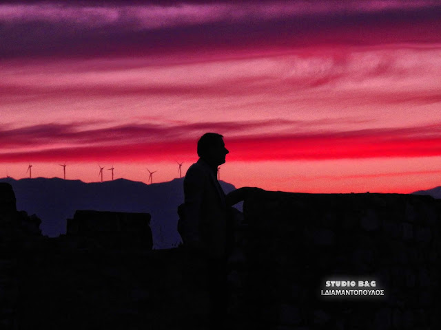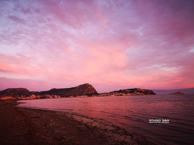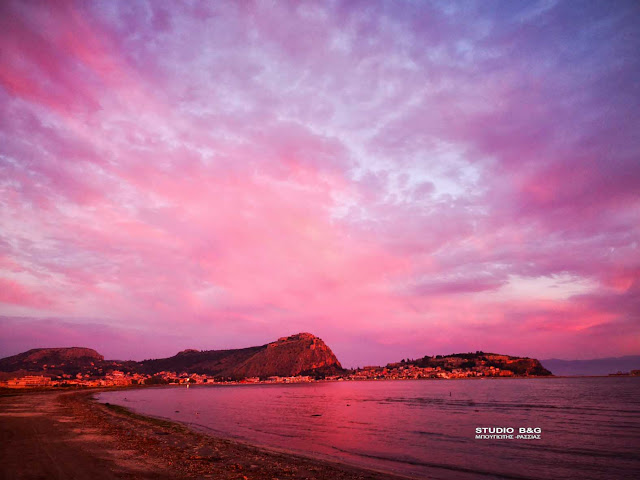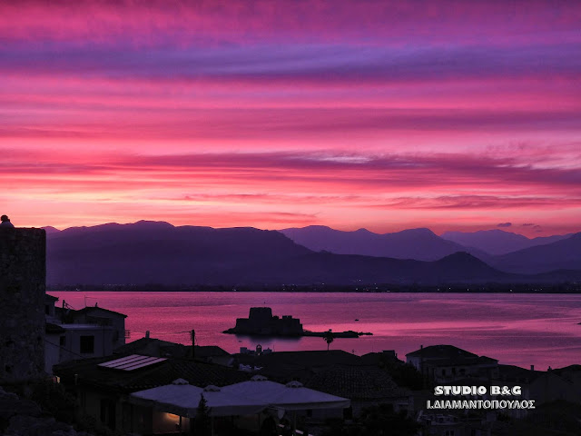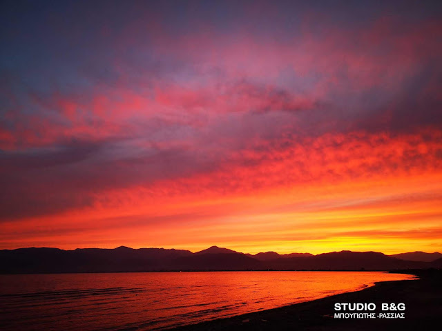 Το εκτυφλωτικό κόκκινο χρώμα κυριάρχησε στον ουρανό της Αργολικής πρωτεύουσας, αναμεμιγμένο με το χρυσό που λαμπυρίζει στα γαλανά νερά του Αργολικού κόλπου.