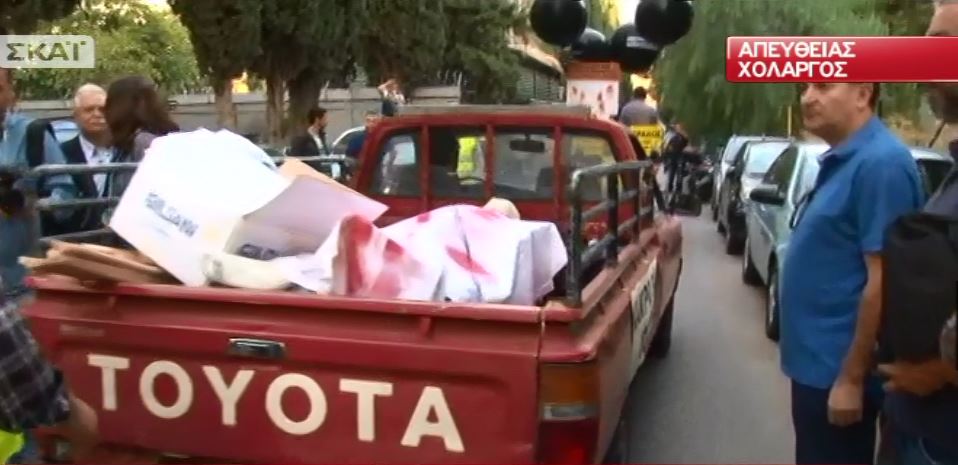 Δείτε στις φωτογραφίες το αγροτικό αυτοκίνητο με τις ετικέτες που φέρει επάνω του.
