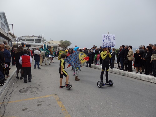 Παρά τον κακό καιρό, αρκετός ήταν ο κόσμος που παρακολούθησε την καρναβαλική παρέλαση και έδωσε το πιο ζεστό χειροκρότημα σε όσους συμμετείχαν.