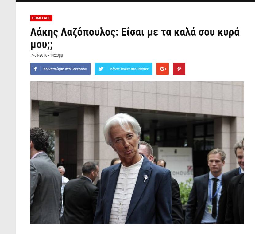 Δριμύτατη επίθεση στην γενική διευθύντρια του Διεθνούς Νομισματικού Ταμείου, Κριστίν Λαγκάρντ, εξαπολύει με άρθρο του που δημοσιεύεται στο altsantiri.gr ο Λάκης Λαζόπουλος.