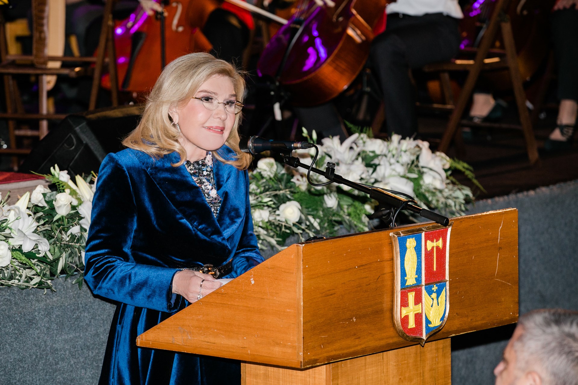 Η Μαριάννα Β. Βαρδινογιάννη κατά τη διάρκεια του χαιρετισμού της