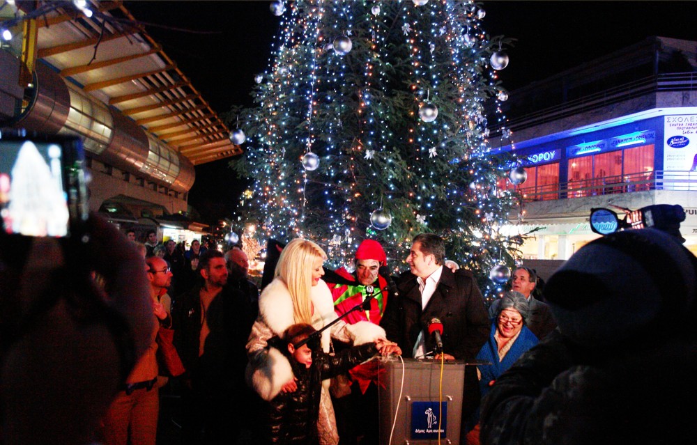 Μέσα σε ζεστή και χαρούμενη Χριστουγεννιάτικη ατμόσφαιρα, με το Γιώργο Τσαλίκη να ανεβάζει με τα τραγούδια του το κέφι και την εορταστική διάθεση, η Δημοτική Αρχή του Δήμου Αμαρουσίου και πλήθος παρευρισκόμενων μικρών και μεγάλων άνοιξαν την αυλαία των εορταστικών εκδηλώσεων της πιο χαρούμενης εποχής του χρόνου στην πόλη του Αμαρουσίου.