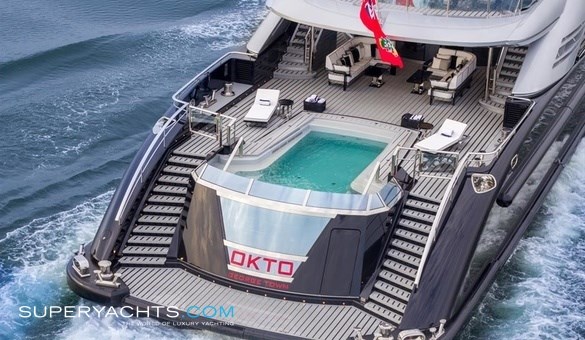Το σκάφος κατασκευάστηκε το 2014 από την εταιρεία ISA στην Ιταλία, στο ναυπηγείο της Ανκόνα, και παραδόθηκε στην οικογένεια το 2015. Το εξωτερικό του έχει σχεδιάσει ο Andrea Vallicelli , ενώ οι εσωτερικοί χώροι φέρουν την υπογραφή του Alberto Pinto.Πρόκειται για ένα σκάφος τεσσάρων καταστρωμάτων με ένα ultra-cool μαύρο κύτος και μια αλουμινένια υπερκατασκευή σε σκούρο ασημί. Η χρήση των καμπυλωτών σχημάτων και των κεκλιμένων στιλιστικών γραμμών δημιουργεί μια αίσθηση ροής σε όλη τους εξωτερικούς χώρους επισκεπτών και προσθέτει στη λειτουργική διαρρύθμιση των χώρων του καταστρώματος περνώντας χωρίς κόπο στο πλούσιο εσωτερικό του.Θεωρείται η επιτομή του στυλ και της πολυτέλειας στην κατηγορία του. Το σκάφος μεταξύ άλλων διαθέτει δύο τζακούζι, πισίνα ιδιωτικό γυμναστήριο, ελικοδρόμιο και κατάστρωμα 80τμ , ιδανικό για ηλιοθεραπεία και πάρτι. Διαθέτει πέντε καμπίνες και μπορεί να φιλοξενήσει έως 12 άτομα. Το σαλόνι-κινηματογράφος του σκάφους είναι εξοπλισμένο με ένα προηγμένο σύστημα ήχου, καθώς και μια τηλεόραση με οθόνη plasma 103 ιντσών για την απόλυτη κινηματογραφική εμπειρία εν πλω.Όσο για τις τεχνικές προδιαγραφές του, η τελική ταχύτητά του φθάνει τους 18 κόμβους. Το Okto είναι σε θέση να φθάσει σε εμβέλεια τα 6.800 nm με την ισχύ των δύο CAT 3512C κινητήρων του.