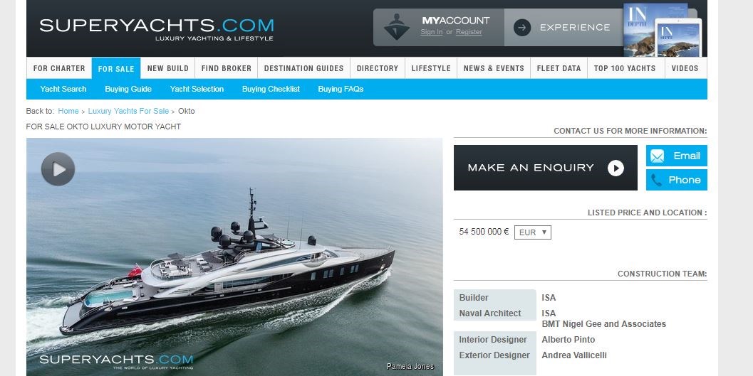 Σημειώνεται πως το σκάφος φέρεται να είναι προς πώληση , όπως αναφέρεται στην ιστοσελίδα superyachts.com