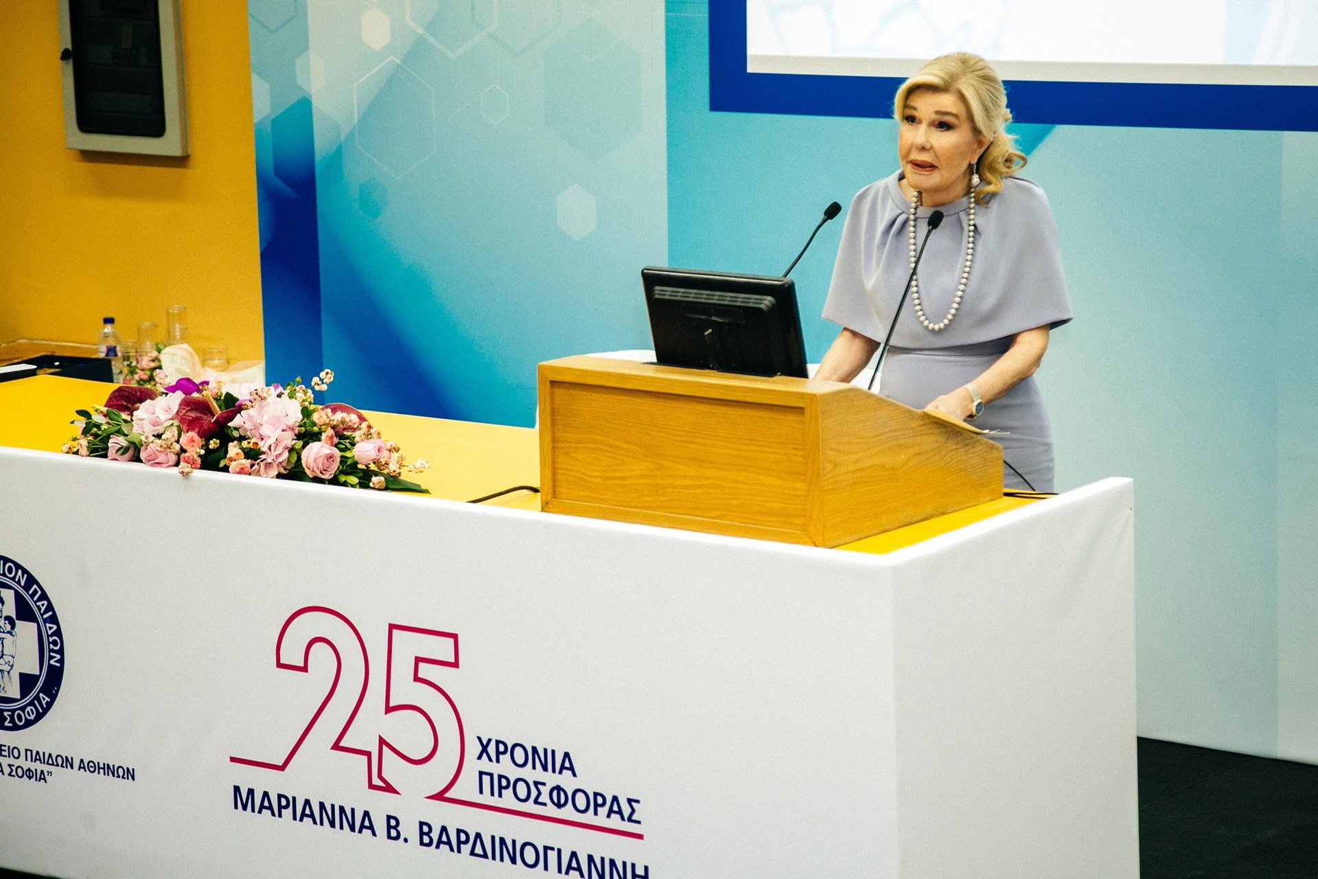 Στην εκδήλωση που διοργανώθηκε στο «Χωρέμειο Αμφιθέατρο» του Νοσοκομείου Παίδων «Η Αγία Σοφία», με αφορμή τα 25 χρόνια από την δημιουργία της Μονάδας Μεταμόσχευσης Μυελού των Οστών το 1993, ο Πρόεδρος της Δημοκρατίας βράβευσε την κυρία Βαρδινογιάννη για την συνολική της προσφορά στον χώρο της υγείας.