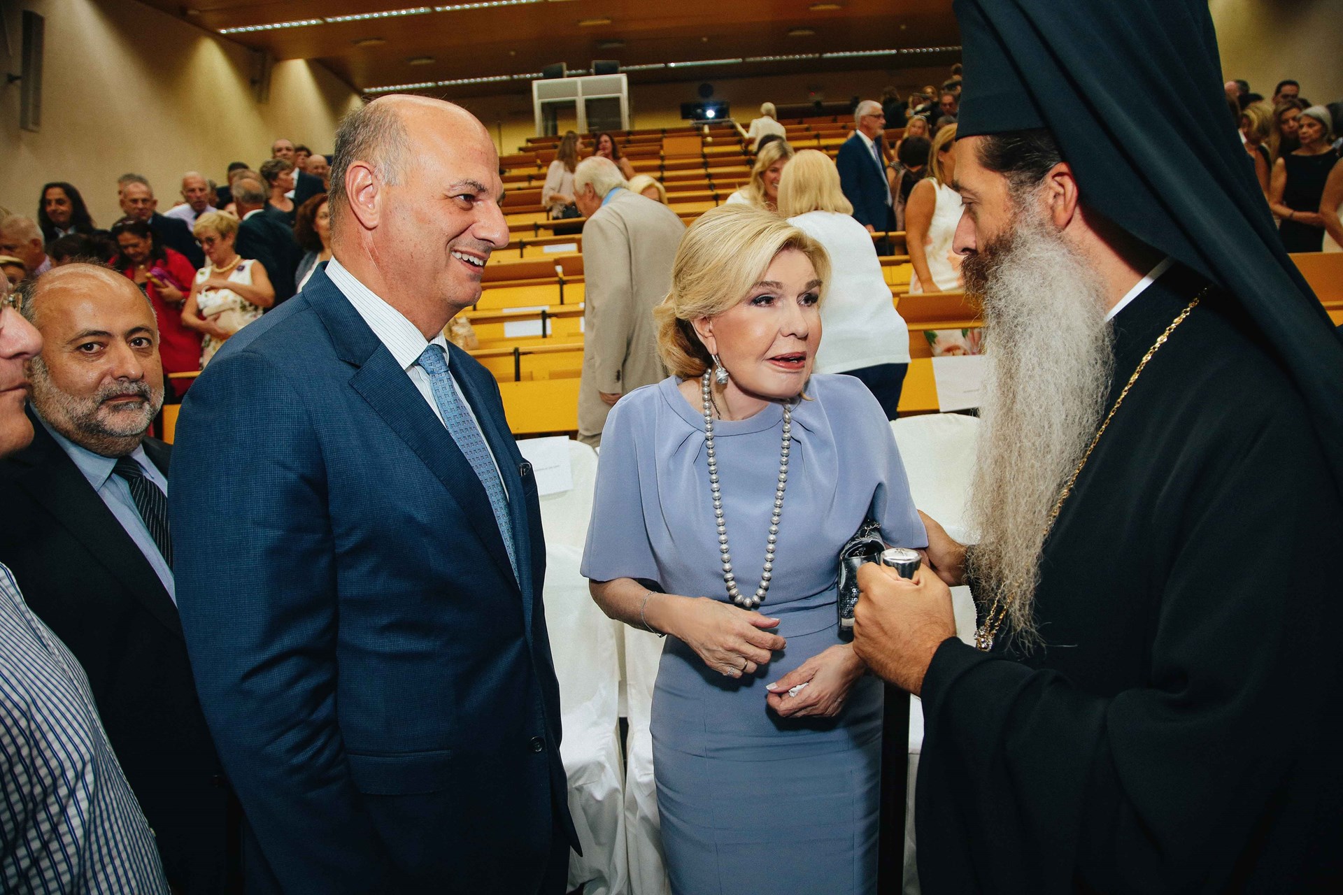 Η Μαριάννα Β. Βαρδινογιάννη με τον εκπρόσωπο του Αρχιεπισκόπου Αθηνών και Πασής Ελλάδος Θεοφιλέστατος Επίσκοπο Θεσπιών Συμεών