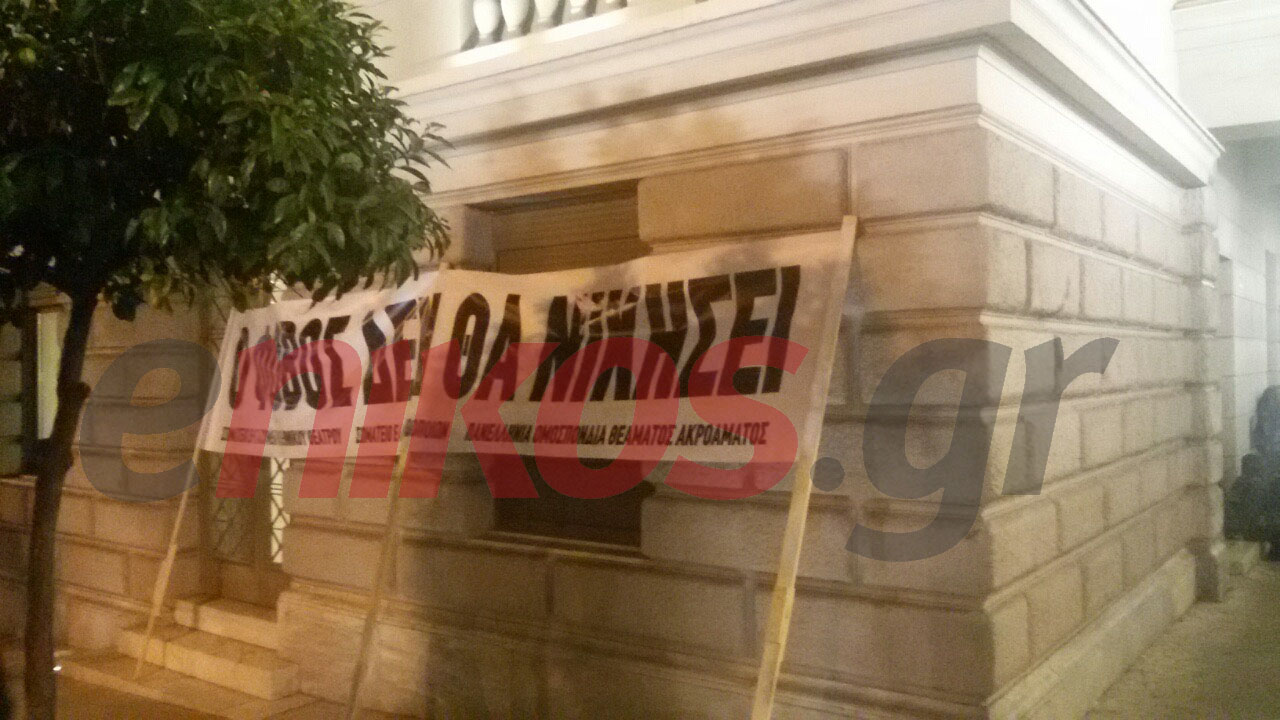 Συγκέντρωση διαμαρτυρίας έξω από το Εθνικό Θέατρο επί της Αγίου Κωνσταντίνου πραγματοποιείται αυτή την ώρα, για την απόφαση του Εθνικού να κατεβάσει την παράσταση με αποσπάσματα από κείμενα του Σάββα Ξηρού «Ισορροπία του Nash». Η συγκέντρωση γίνεται μετά από διαδικτυακό κάλεσμα. «Ο φόβος δεν θα νικήσει», γράφει ένα πανό των διαδηλωτών.