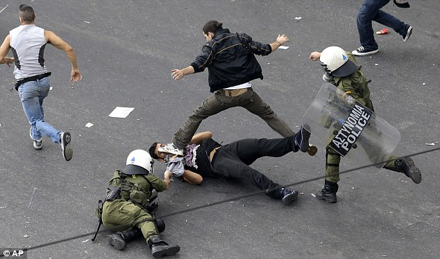 Χαρακτηριστικά στιγμιότυπα της 9ης Οκτωβρίου στην Αθήνα. Η Daily Mail κατέγραψε σχεδόν τα πάντα από το τι συνέβη στους δρόμους της Αθήνας.