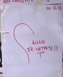 Γέμισε στάση λεωφορείου του ΟΑΣΘ, με αυτοσχέδιες αφίσες με τη φράση «Άννα σε λατρεύω».