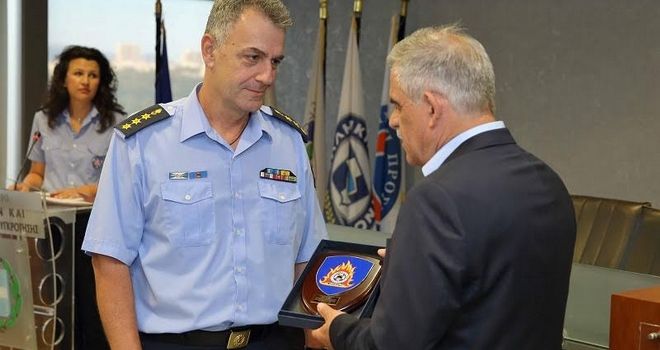 Το πλήρωμα του πυροσβεστικού αεροσκάφους Canadair, που διασώθηκε έπειτα από μια ιδιαίτερα δύσκολη αναγκαστική προσγείωση κατά τη διάρκεια των επιχειρήσεων κατάσβεσης της μεγάλης πυρκαγιάς στα Δερβενοχώρια, τίμησε σήμερα ο Αναπληρωτής Υπουργός Προστασίας του Πολίτη, Νίκος Τόσκας, σε εκδήλωση που πραγματοποιήθηκε στην αίθουσα Παύλος Μπακογιάννης.