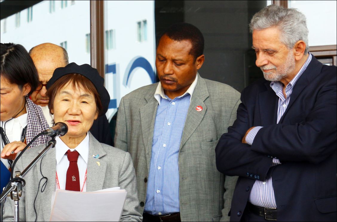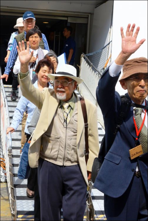 Το φετινό, 87ο παγκόσμιο ταξίδι του «Πλοίου της Ειρήνης» είναι αφιερωμένο στην 70η επέτειο της αντιφασιστικής νίκης στον Β΄ Παγκόσμιο Πόλεμο και τη θλιβερή 70η επέτειο των ατομικών βομβαρδισμών της Χιροσίμα και του Ναγκασάκι (6 και 9 Αυγούστου 1945).Το πλοίο ξεκίνησε από την Γιοκοχάμα της Ιαπωνίας το παγκόσμιο ταξίδι του – διάρκειας 93 ημερών – στις 12 Απριλίου, με αίτημα έναν κόσμο χωρίς πυρηνικά και χωρίς πολέμους.