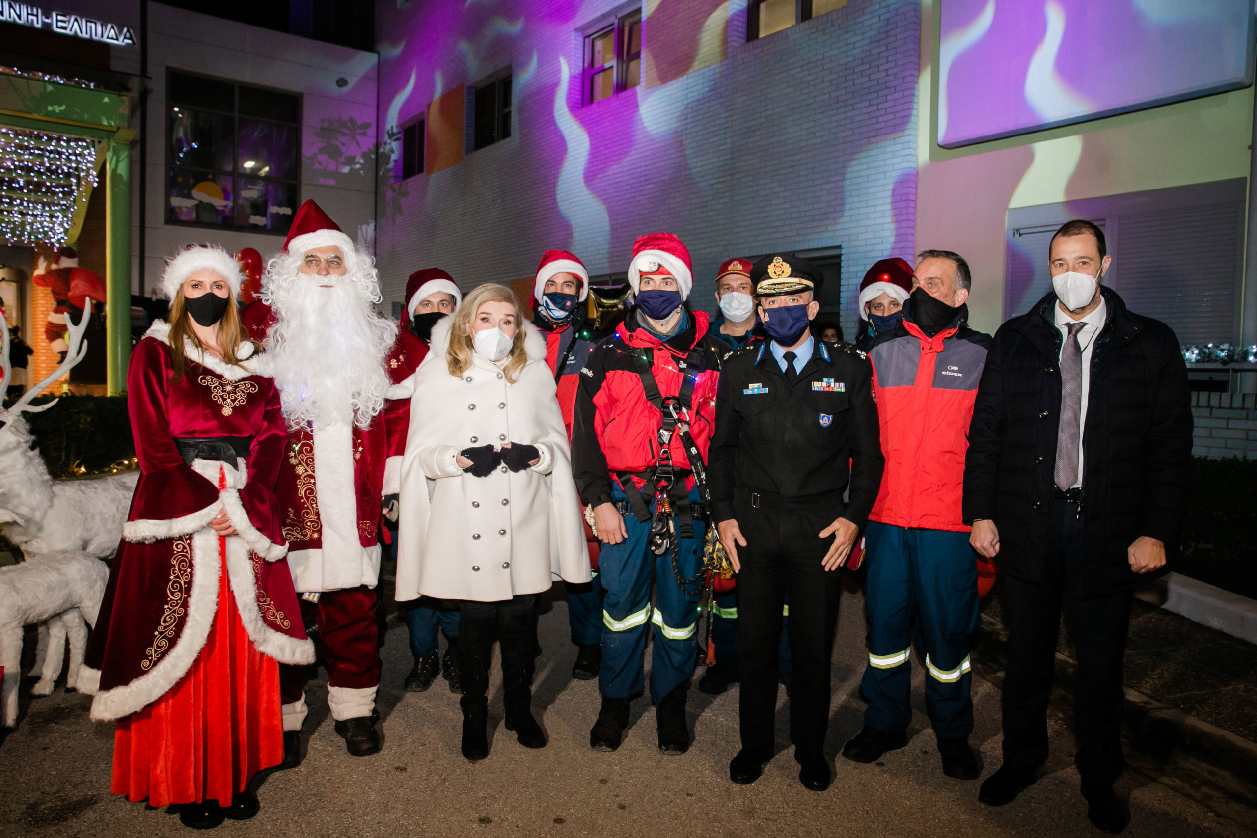 Ο Αρχηγός του Πυροσβεστικού Σώματος Αντιστράτηγος Στέφανος Κολοκούρης και τα στελέχη του Πυροσβεστικού Σώματος και της Ε.Μ.Α.Κ., ένωσαν τις δυνάμεις τους, για τρίτη συνεχή χρονιά, με το Σωματείο «ΕΛΠΙΔΑ-Σύλλογος Φίλων Παιδιών με καρκίνο» και την Πρόεδρό του Μαριάννα Β. Βαρδινογιάννη για να φέρουν στην Μονάδα το πνεύμα των Χριστουγέννων. Παρόντες στην εκδήλωση ήταν ο Υπουργός Υγείας κύριος Θάνος Πλεύρης, ο Κοσμήτορας της Βουλής των Ελλήνων και βουλευτής Δωδεκανήσου Βασίλειος – Νικόλαος Υψηλάντης και ο Κοινός Διοικητής των Νοσοκομείων Παίδων «Η ΑΓΙΑ ΣΟΦΙΑ» και «Π.&Α. ΚΥΡΙΑΚΟΥ» κύριος Μανώλης Παπασάββας.
