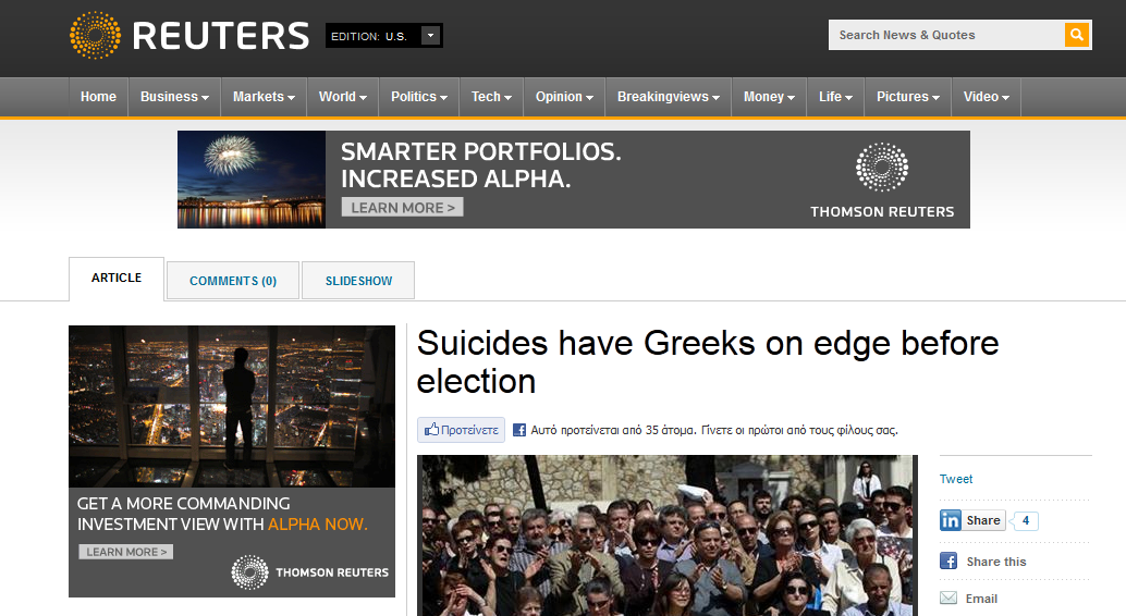 Το Reuters για τις αυτοκτονίες