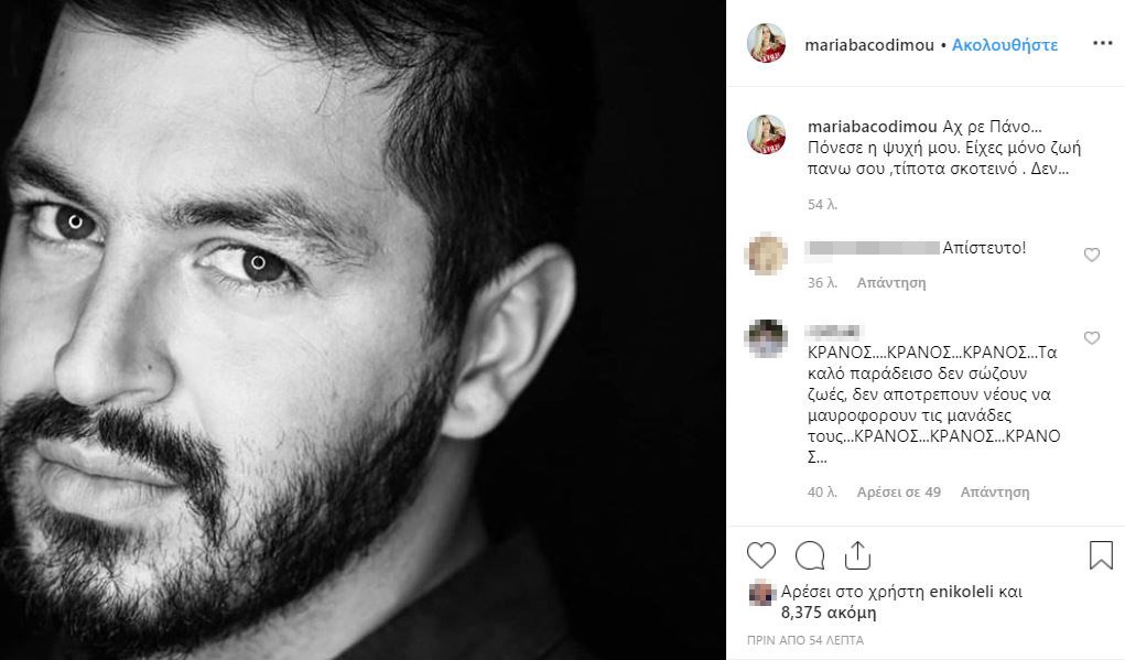 Η γνωστή παρουσιάστρια ανέβασε μία φωτογραφία του Πάνου Ζάρλα στον προσωπικό της λογαριασμό στο Instagram και έγραψε: “Aχ ρε Πάνο… Πόνεσε η ψυχή μου. Είχες μόνο ζωή πάνω σου ,τίποτα σκοτεινό. Δεν…”.
