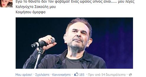 Πριν από λίγο και η Ελένη Ράντου αποχαιρέτησε με ένα πολύ συγκινητικό μήνυμα στο Facebook τον Σάκη Μπουλά.