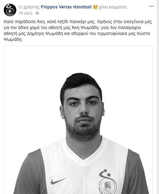 Σε ανάρτηση του, ο σύλλογος Φίλιππου Βέροιας στο Facebook γράφει: «Καλό παράδεισο Άκη, καλό ταξίδι παλικάρι μας. Θρήνος στην οικογένειά μας για τον άδικο χαμό του αθλητή μας Άκη Ψωμιάδη, γιου του παλαίμαχου αθλητή μας Δημήτρη Ψωμιάδη και αδερφού του τερματοφύλακά μας Κώστα Ψωμιάδη».
