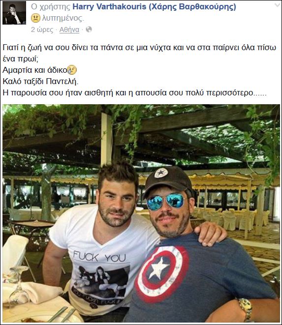 Με ένα συγκινητικό μήνυμα στην προσωπική του σελίδα στο Facebook, ο Χάρης Βαρθακούρης αποχαιρέτησε τον Παντελή Παντελίδη.