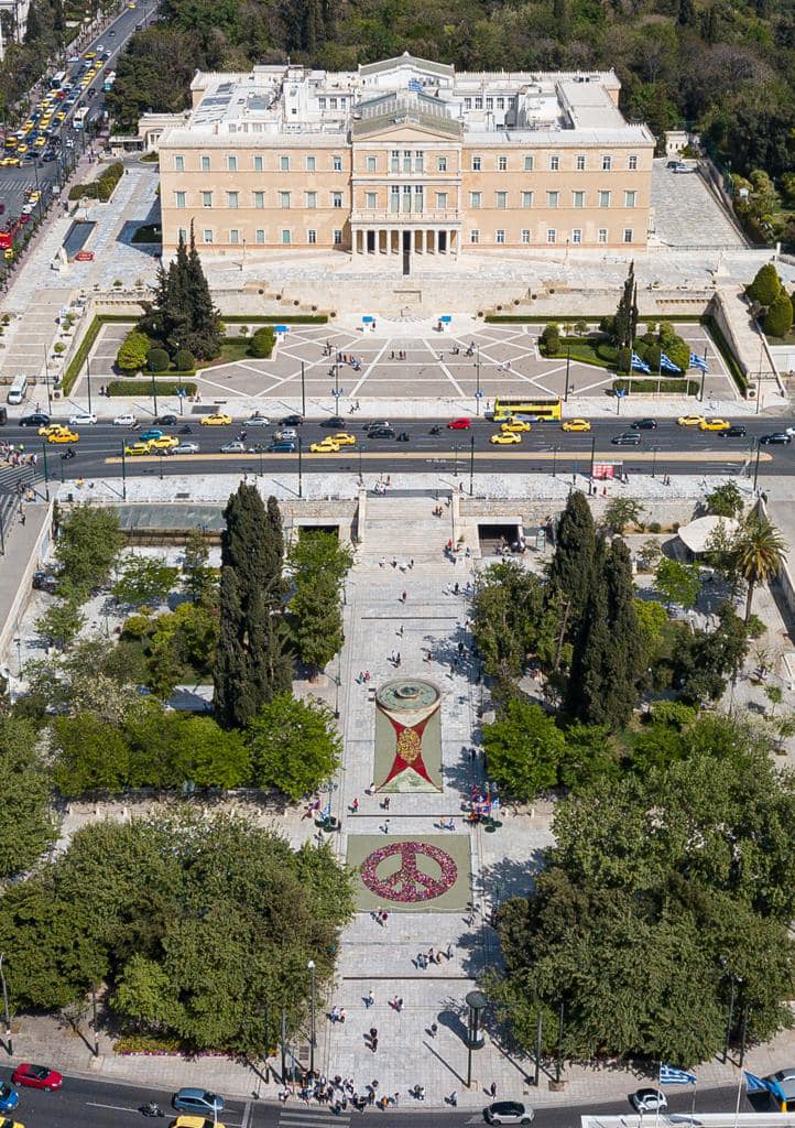Ο δήμαρχος Κώστας Μπακογιάννης αναφέρει σε ανάρτησή του: «Αυτήν τη δύσκολη άνοιξη, αυτή τη στενάχωρη εργατική Πρωτομαγιά, οι προσευχές μας ενώνονται με τα 13.600 λουλούδια που σχηματίζουν το παγκόσμιο σύμβολο – το σήμα της Ειρήνης στην πλατεία Συντάγματος, σε μια έκκληση να τελειώσει αυτός ο αδυσώπητος πόλεμος σύντομα».
