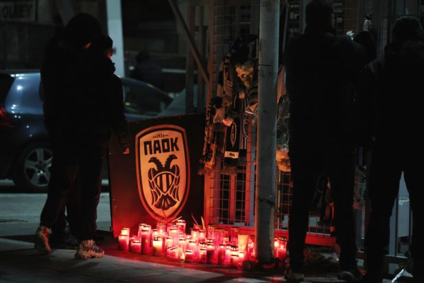 Σε κλίμα βαθιάς συγκίνησης και πένθους, οι ποδοσφαιριστές του ΠΑΟΚ, ο προπονητής της ομάδας Ράζβαν Λουτσέσκου και μέλη της διοίκησης του συλλόγου βρέθηκαν έξω από το γήπεδο της Τούμπας, προκειμένου να αποτίσουν φόρο τιμής στους επτά φίλους της ομάδας που έχασαν τη ζωή τους.