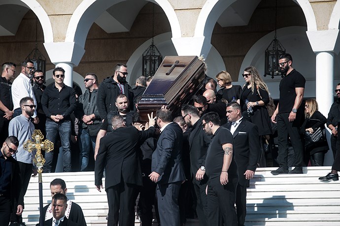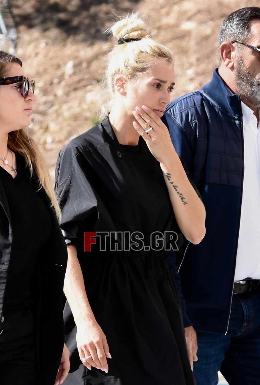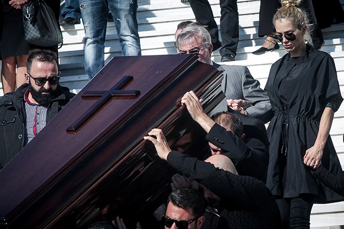 Τραγική φιγούρα η σύζυγός του, γνωστό μοντέλο, Βικτώρια Καρύδα που έφτασε στην εκκλησία μαζί με τα δύο ανήλικα παιδιά της με τον επιχειρηματία. Έπειτα από απαίτηση της οικογένειας, η ταφή θα γίνει στην Αυστραλία.