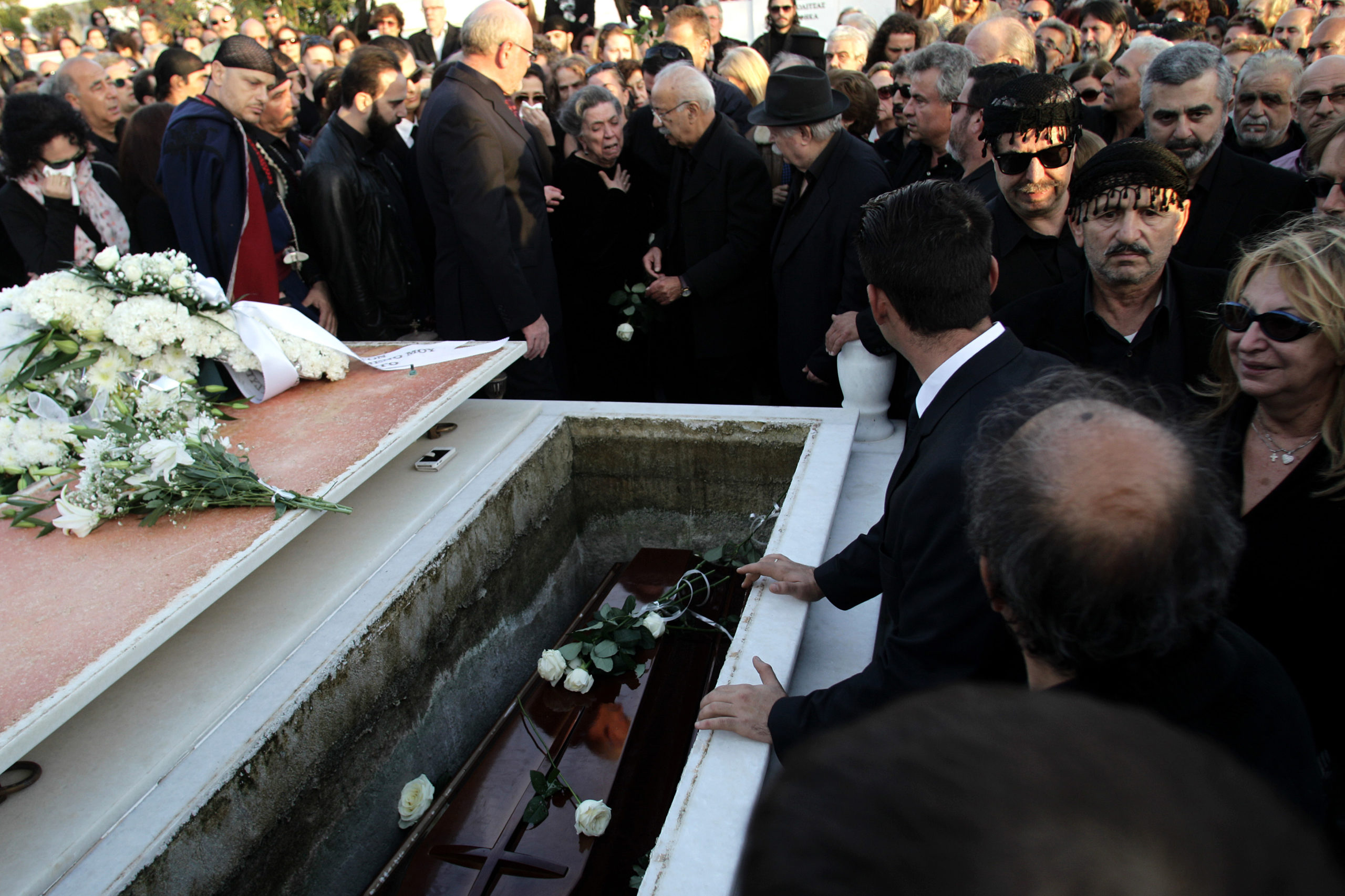 Το τελευταίο αντίο στον γιο του Νίκου Ξυλούρη, Γιώργο, είπαν εκατοντάδες φίλοι και συγγενείς στο κοιμητήριο του Χαλανδρίου.