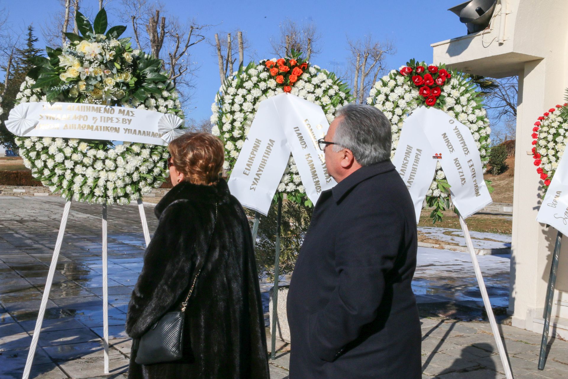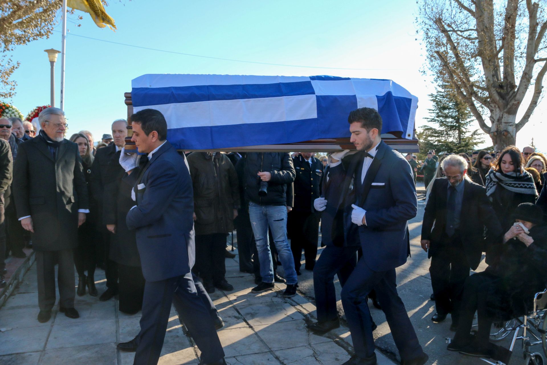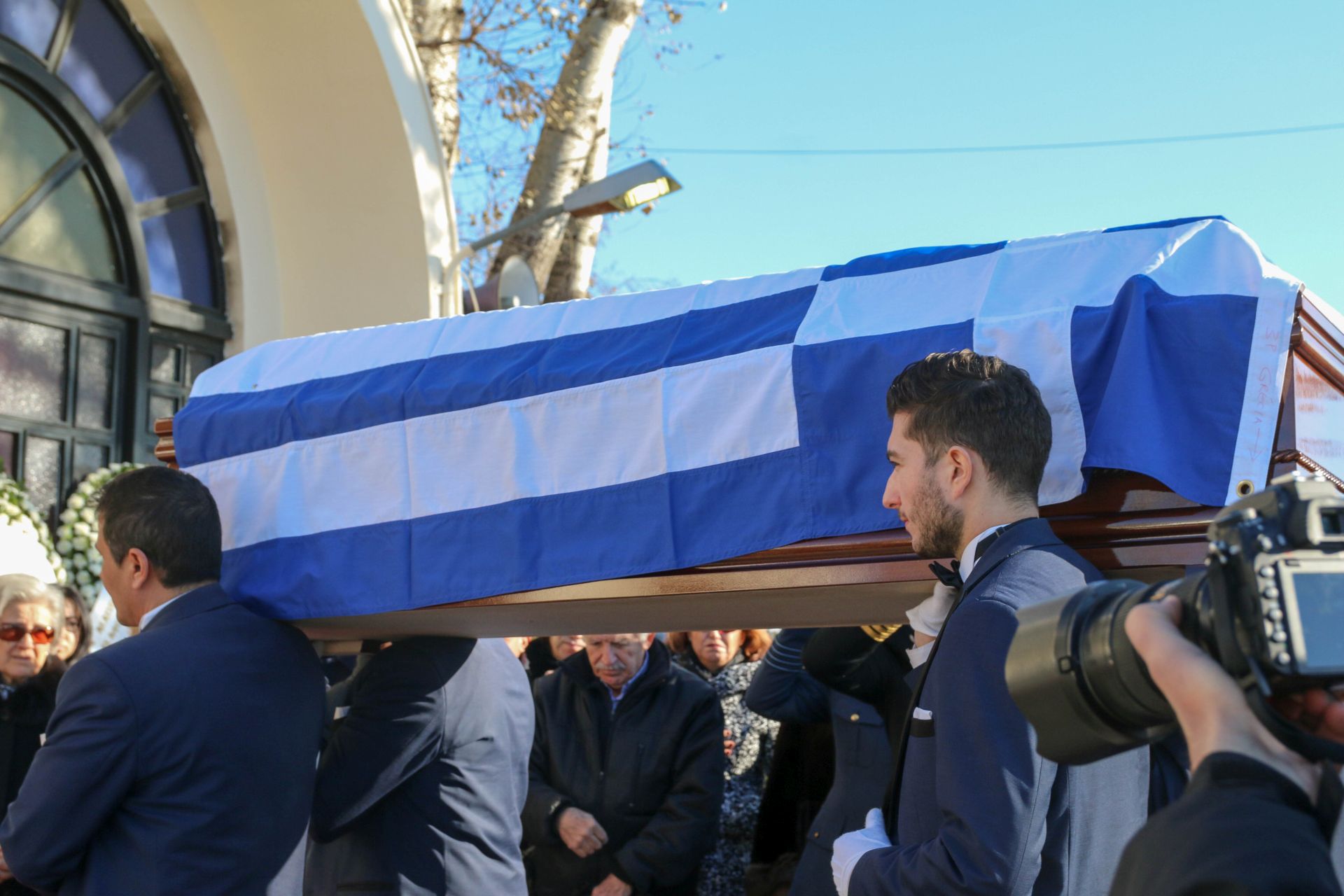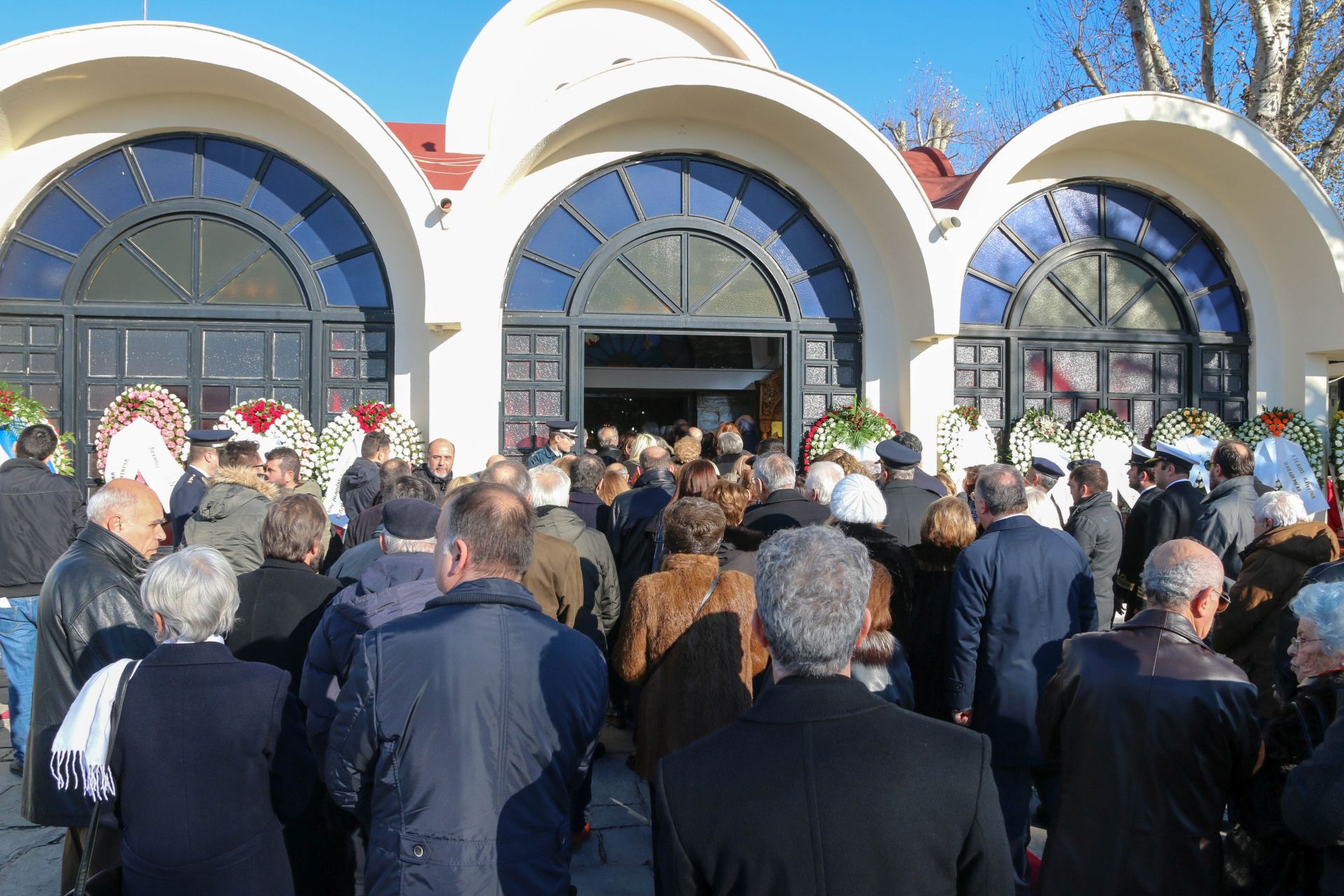 Στο κοιμητήριο βρίσκεται άγημα του στρατού και στρατιωτική μπάντα, ενώ το φέρετρο έχει τυλιχθεί με την ελληνική σημαία. Την κυβέρνηση εκπροσωπεί ο υφυπουργός Εξωτερικών, Γιάννης Αμανατίδης.