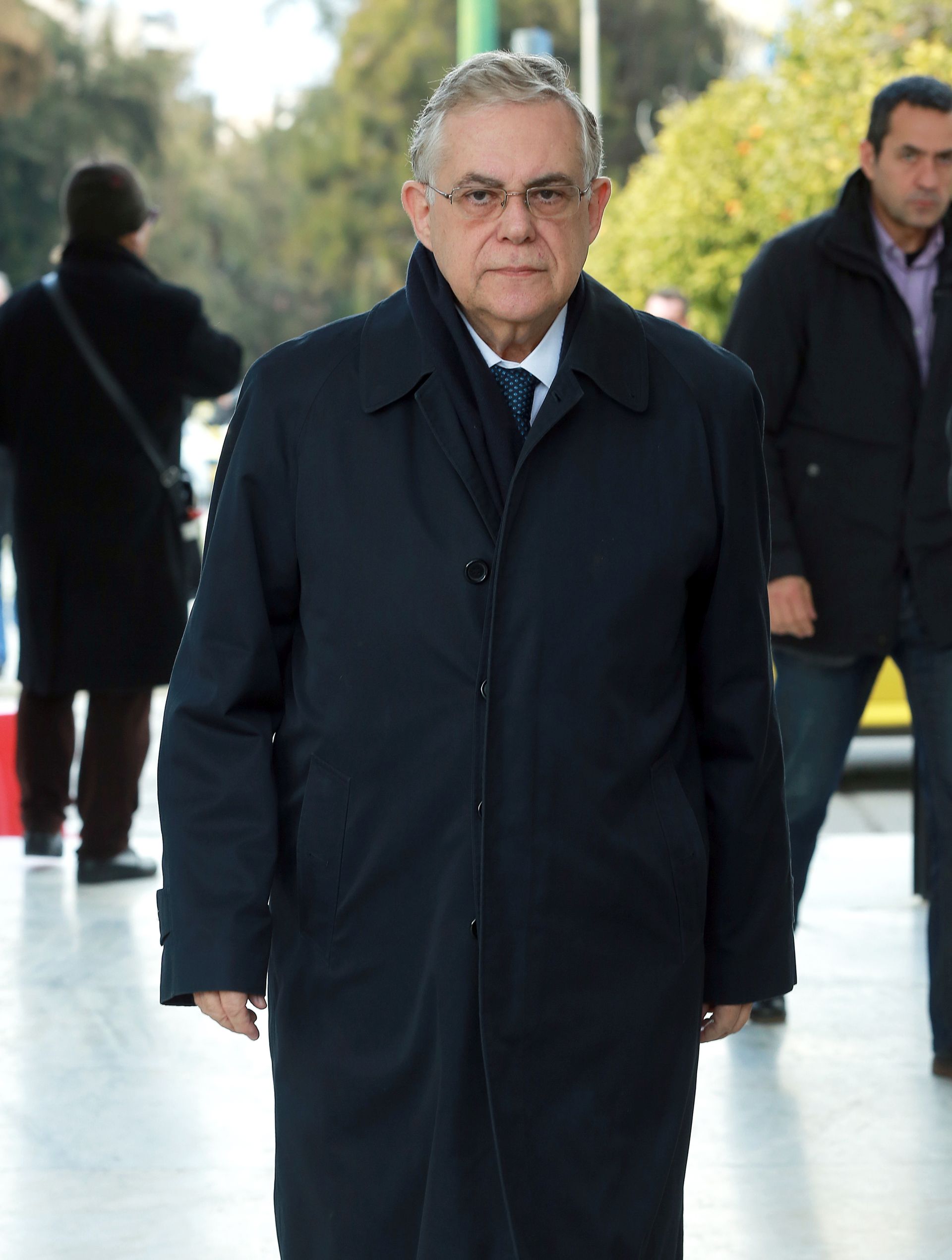 Εκ μέρους της Ακαδημίας Αθηνών, ο πρόεδρος, Λουκάς Παπαδήμος, τον αποχαιρέτησε καταθέτοντας «δάφνινο στεφάνι στον σπουδαίο δημιουργό, μεγάλο δάσκαλο, άξιο και πολύ αγαπητό συνάδελφο και ακαδημαϊκό. Ο Σπύρος Ευαγγελάτος θα μείνει αθάνατος στη μνήμη μας και στην ιστορία του θεάτρου» είπε στον επικήδειο που εκφώνησε ο Λ. Παπαδήμος.