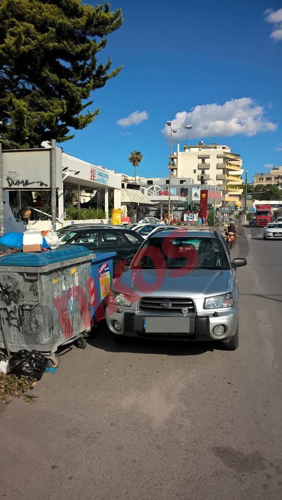 Στη δεύτερη φωτογραφία ένας άλλος οδηγός έχει αφήσει το όχημα του στη μέση του δρόμου καθώς το πάρκαρε δίπλα από τους κάδους των σκουπιδιών.
