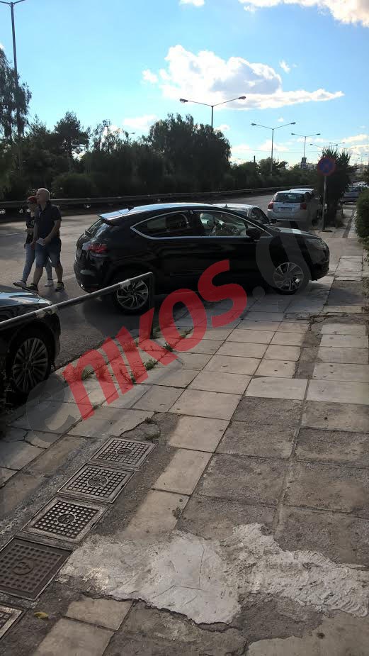 Στη μια φωτογραφία φαίνεται ο οδηγός ενός αυτοκινήτου να το έχει βάλει κάθετα πάνω στο πεζοδρόμιο με αποτέλεσμα να εμποδίζει τη διέλευση των πεζών.
