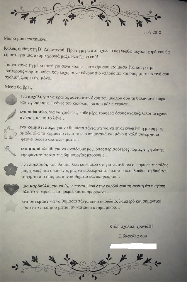 Το πιο ξεχωριστό, ευφάνταστο και τρυφερό καλωσόρισμα με αφορμή την πρώτη μέρα της νέας σχολικής χρονιάς, επιφύλαξε μια δασκάλα σε μαθητές της Β’ τάξης σε Δημοτικό Σχολείο των Ιωαννίνων, καταφέροντας με τη μοναδική της ιδέα να κερδίσει την αγάπη των παιδιών αλλά και το σεβασμό των γονιών τους .