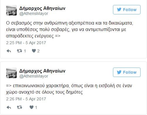 Τo tweet του Καμίνη για την παρέμβαση του “Ρουβίκωνα” στο δημαρχείο της Αθήνας