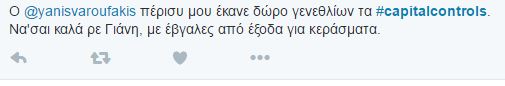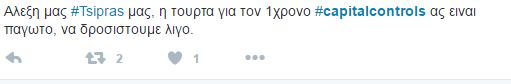 Στο στόχαστρο των χρηστών για τον ένα χρόνο capital controls, βρέθηκε η κυβέρνηση, ο Πρωθυπουργός Αλέξης Τσίπρας, αλλά και ο πρώην υπουργός Οικονομικών Γιάνης Βαρουφάκης.