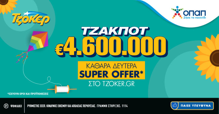 Για αυτή την προσφορά ισχύουν όροι και προϋποθέσεις και οι παίκτες μπορούν να μάθουν περισσότερα μπαίνοντας στο tzoker.gr ή στην εφαρμογή ΤΖΟΚΕΡ.